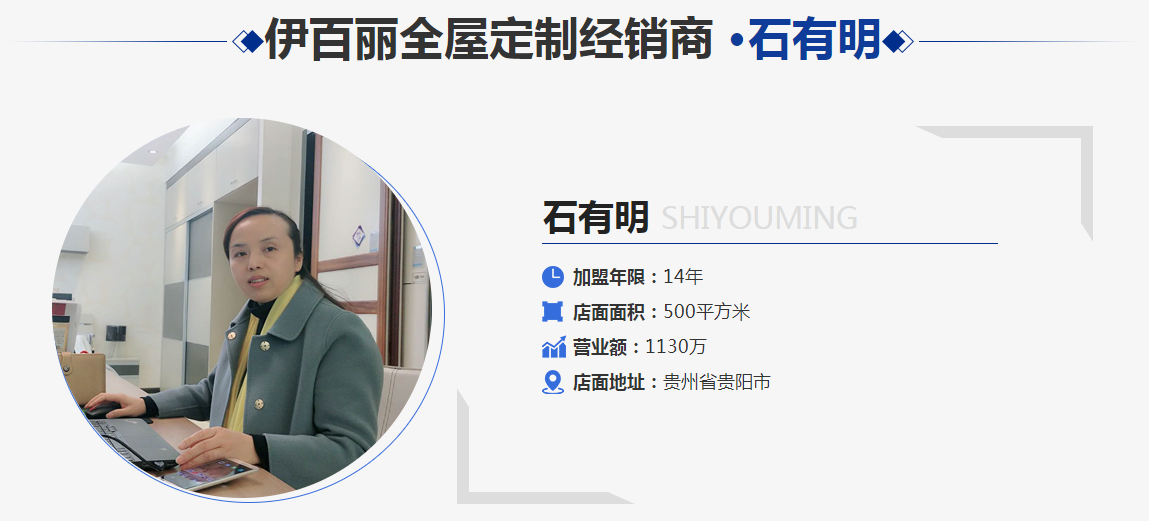 我有信心和團隊的夥伴們一起以穩健的步伐走過本次疫情困境,成為伊百麗做成全國500多家門店的標杆,並且將伊百麗全屋定製帶進貴陽的每一個小區,服務更多的家庭,為他們帶來更好的家居定製體驗!
