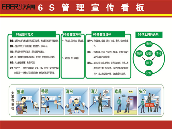 6S的本質是一種執行力的企業文化,不怕困難,想到做到,做到做好,作為基礎性的6S工作落實,能為其他管理活動提供優質的管理平台,能極大提高公的運作效率,為伊百麗全屋定製的騰飛提供更大助力!