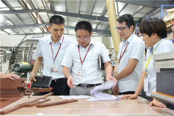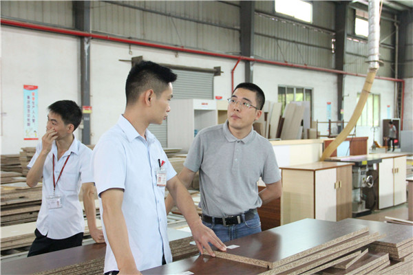 "十年樹木,百年樹人",持續提升員工的想法、行為、習慣,提高其素養絕非一朝一夕就能實現的。為了通過點點滴滴,潛移默化提升員工整體素質,確保"人造環境,環境育人",2018年6月25日下午,伊百麗全屋定製的領導層對4.0智造車間進行了工廠6S管理落實情況的檢查。