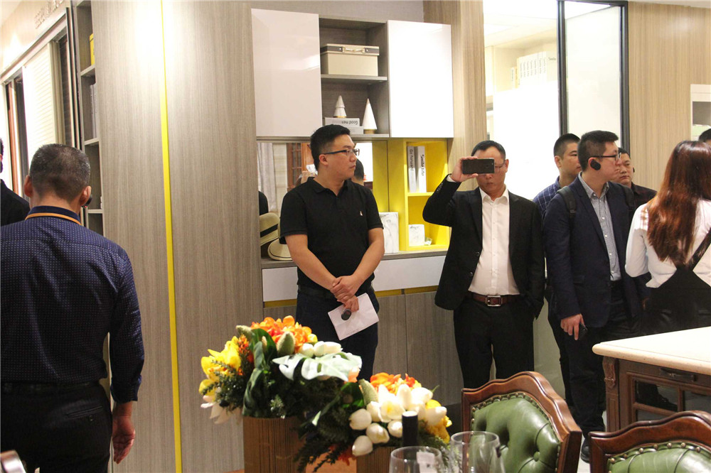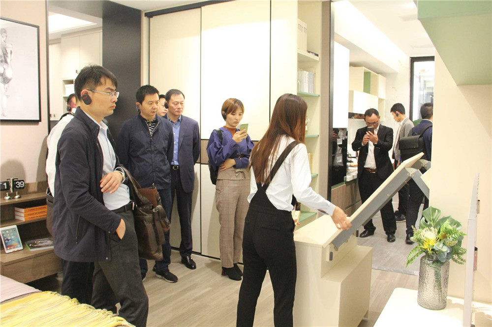 2018年10月18日,由全國工商聯家具裝飾業商會定製家居專委會、全聯家居流通平台促進健康發展委員會(家促會)的喜盈門國際商業連鎖集團、月星家居集團、金馬凱旋家居集團、深圳市好百年家居連鎖股份有限公司等35家國內優秀賣場的老板及負責人,及一些定製家居行業同仁代表、國內媒體代表組成的“全國工商聯家促會走進優秀定製家居企業”考察團走進伊百麗全屋定製,伊百麗全屋定製總經理黃誌存、副總經理方文森等高層領導熱情接待。