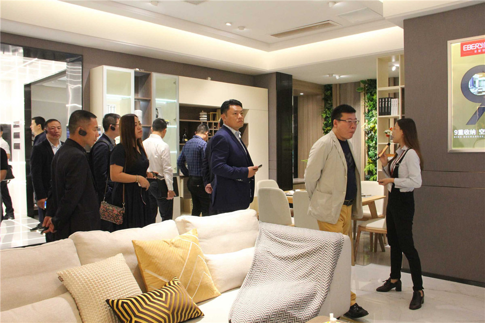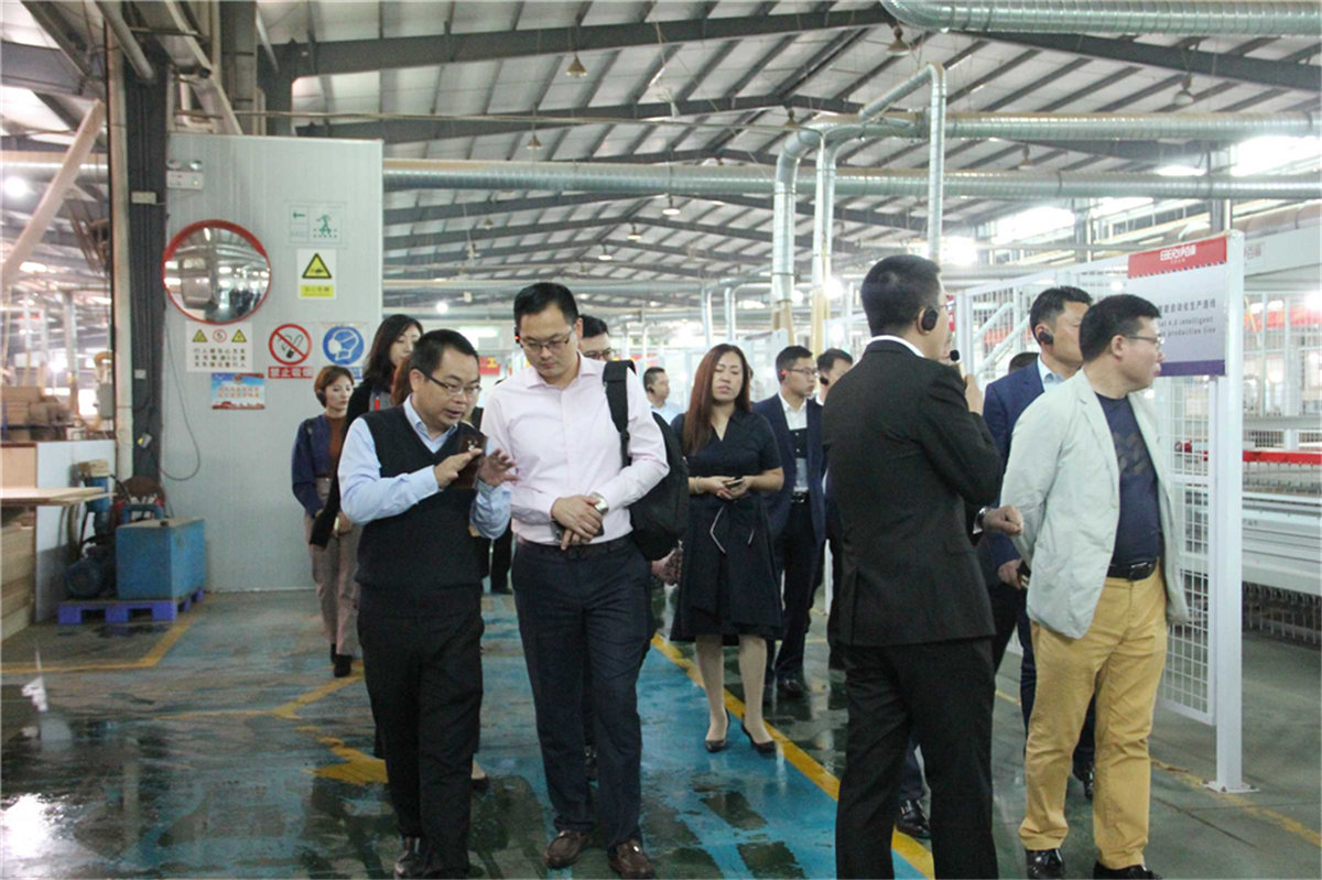 熱烈的歡迎儀式後,考察團一眾在伊百麗領導層的帶領下參觀了伊百麗4.0智造工廠及展廳,隨後雙方就行業發展及伊百麗全屋定製的發展方向作出了深入的交流。