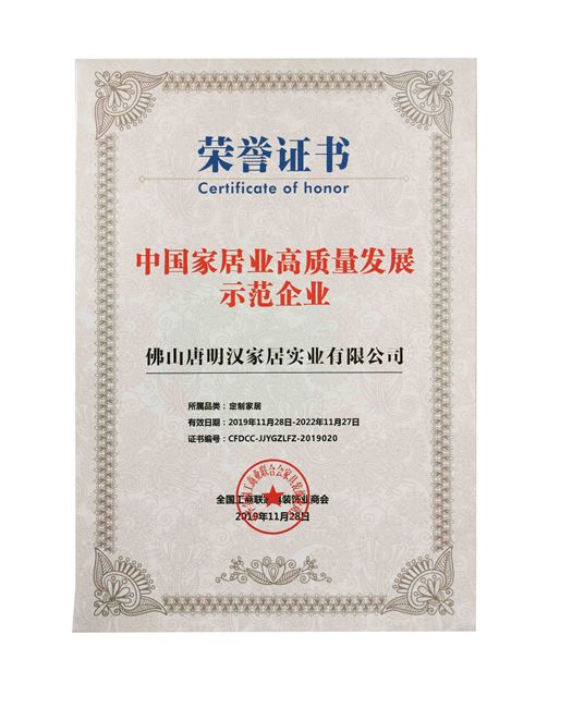 經過近一年的研究與商討製定,伊百麗全屋定製作為標準主編單位的《定製家居產品安裝服務規範》,在2019年6月終於定稿,規範的定製,有效推動家居行業產品技術的創新和提高,引領行業的穩健持續發展。伊百麗因此獲得“團體標準T/CFDCC 0207-2019 《定製家居產品安裝服務規範》主起草單位”、“中國家居業高質量發展示範企業”榮譽稱號。