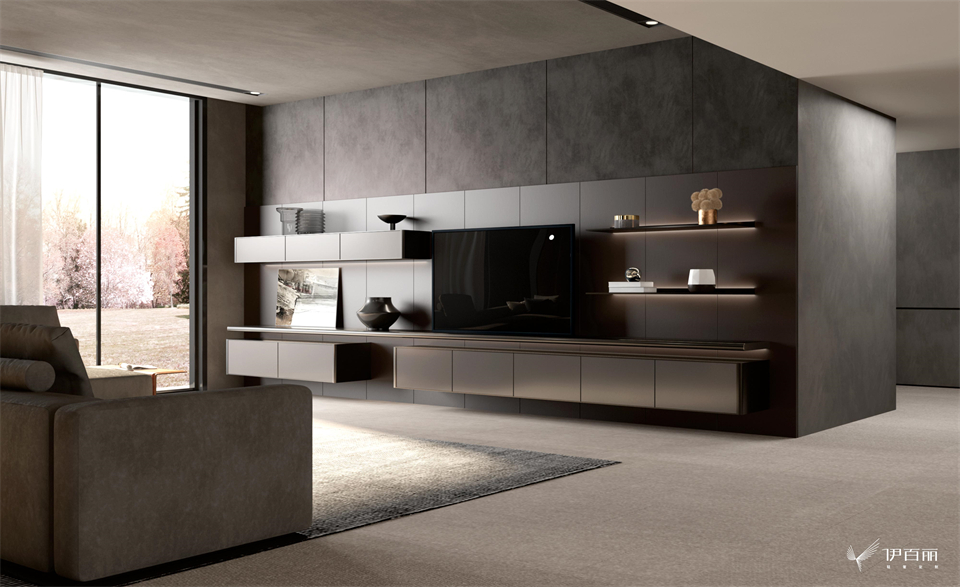 伊百麗輕奢定製“慕尚係列”,設計靈感來源於賓利慕尚,產品參考高檔汽車“實木+皮革”的經典內飾設計理念,櫃體采用木紋與門板的立體皮紋進行設計組合。通過現代手法和甄選材質的應用營造出獨特的現代輕奢感!風範與時尚完美融為一體,奢華與性能並重,完美詮釋紳士哲學:簡潔而不失優雅,風度中兼備內涵!