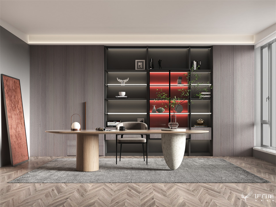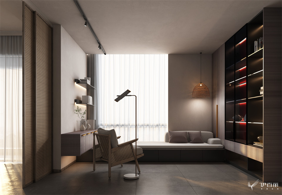 書房氛圍與全屋保持一致, 侘寂、淡泊不失生活氣。