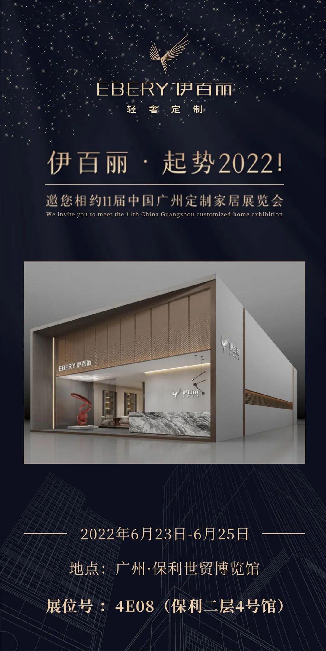 廣州定製家居展,伊百麗的精彩不止於此......誠邀您在百忙之中撥冗蒞臨伊百麗4E08城市美學館〔保利二層4號高端定製生活館),同襄盛舉,共話未來!期待您的到來!