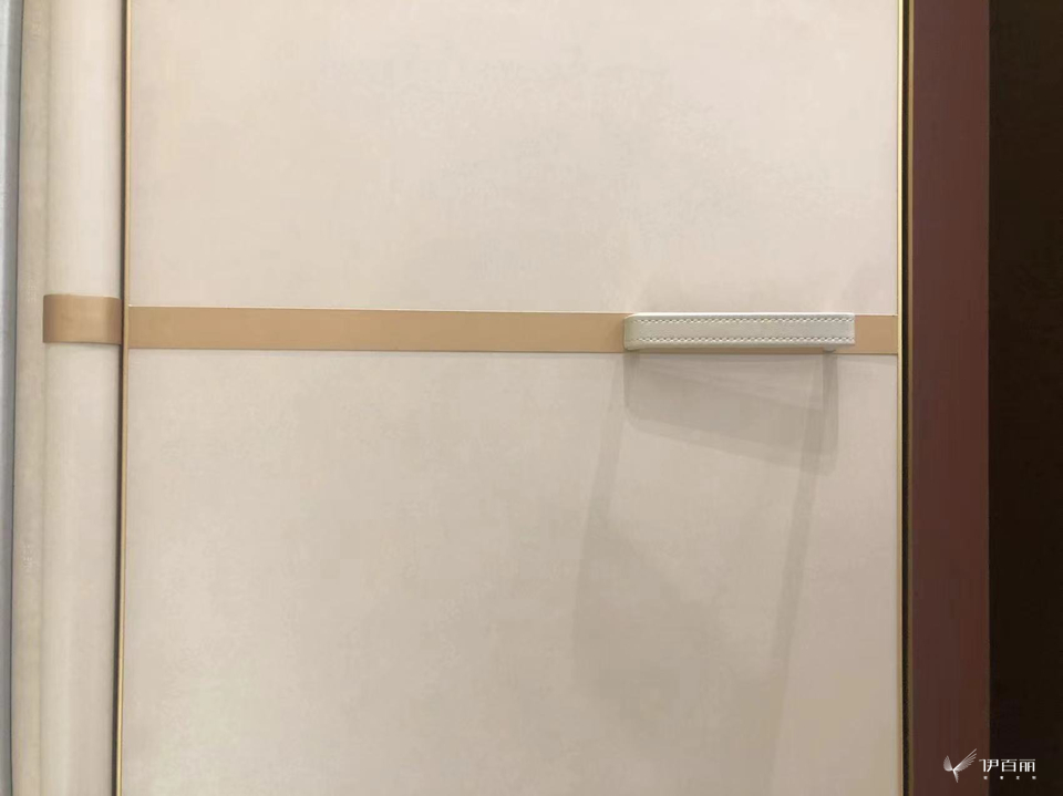 專屬皮質拉手:通過中式建築的“中柱”手法來體現產品的莊重大氣,並結合現代輕奢家具的皮質工藝和和輕奢金點綴,讓拉手擁有中式古典風而摩登時尚。