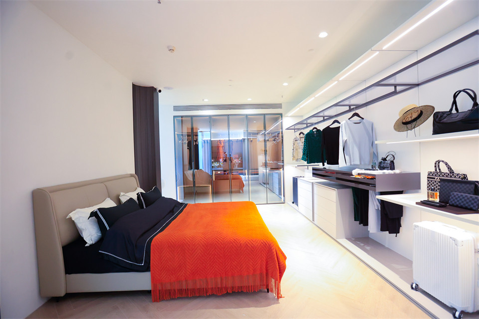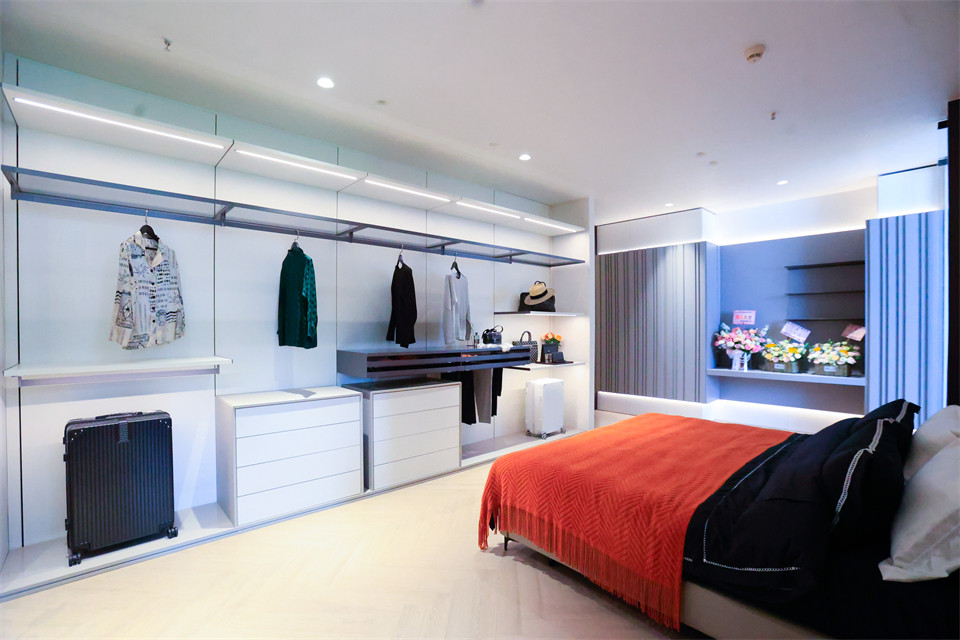 從黑白極簡到意式輕奢、法式到新中式、門牆櫃一體化、大家居展品空間化展示,不同風格的空間直接以情景空間穿插步入式動線,一步一場景,一步一空間的效果,仿佛置身於數個完整展示的樣板間,給予用戶更強烈的代入感,為家居消費者徐徐展開美好的生活圖卷。