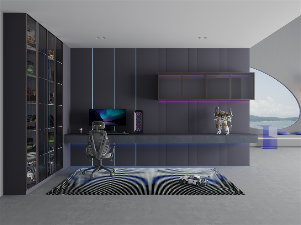 外形潛藏著力量感,極富韻味的色彩分割賦予了空間恰到好處的高雅與浪漫;黑白分割呈現出的美感,簡潔的空間收納布局,賦予生活一份靜謐恬然的溫柔雅趣!
