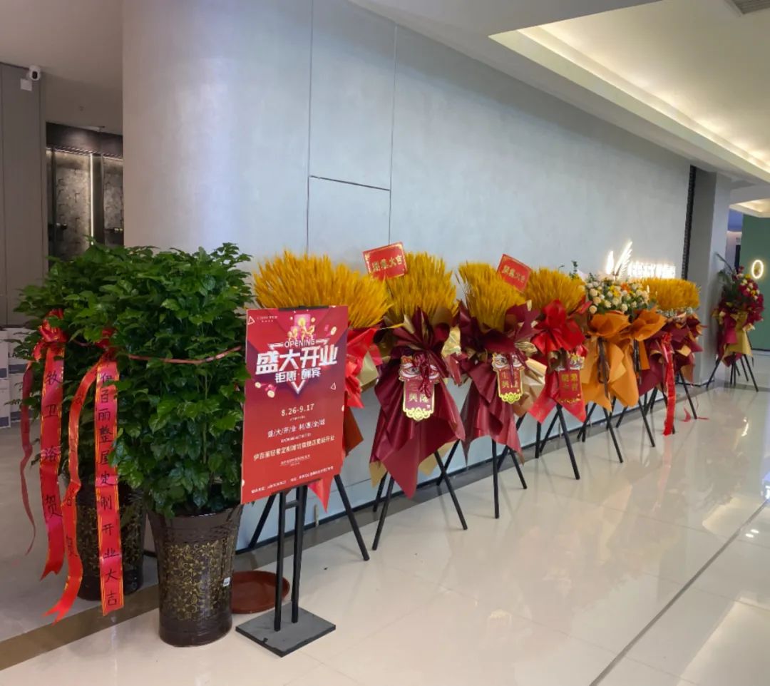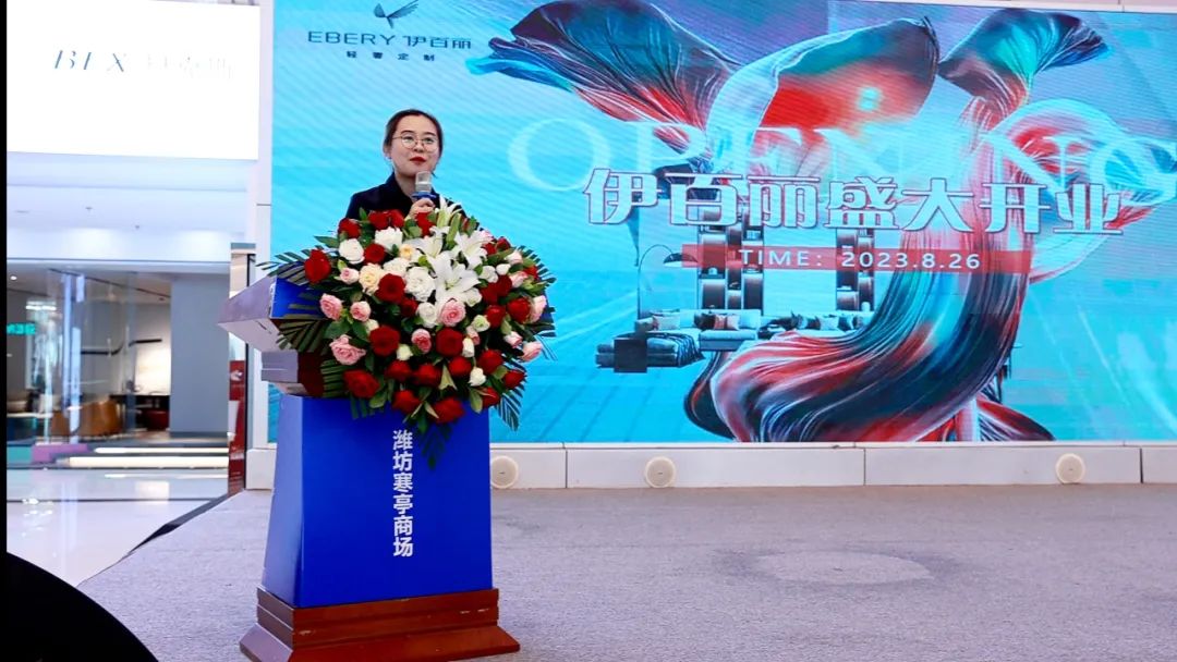 伊百麗輕奢定製總經理黃誌存先生、伊百麗輕奢定製營銷總經理彭德才先生、伊百麗輕奢定製大區經理胡華平先生受邀出席本次開業盛典!同時來自濰坊市的各界客戶朋友、行業人士等紛至遝來,送上開業花籃和祝福,共同見證這盛大的時刻。