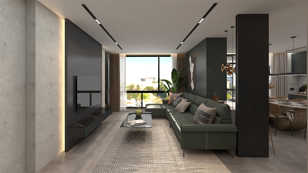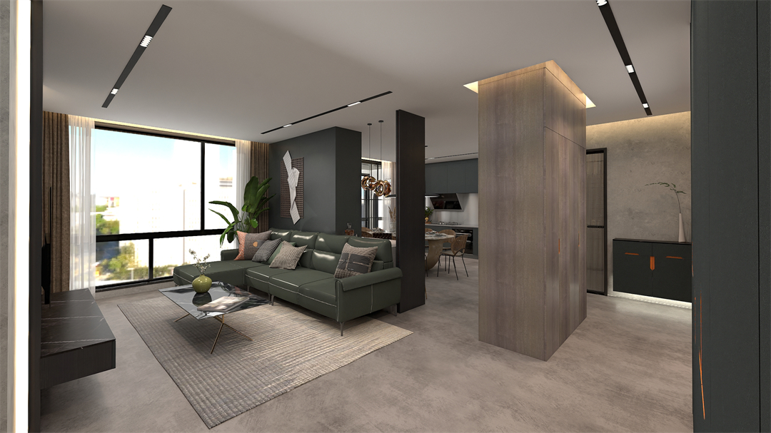 客廳空間以深色為主調鋪敘整個空間,搭配簡約現代的軟裝陳設,營造通透雅致、彰而不顯的空間格調!電視櫃離地懸空設計,從視覺上延伸了客廳的“高挑感”,讓居室視覺層次更豐富。