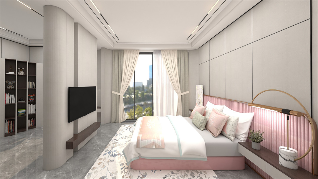 女孩房裝著粉色童年的美好夢想,整體配色以溫馨治愈的淺白色為基本色調,讓房間散發著甜美、夢幻的氣息。