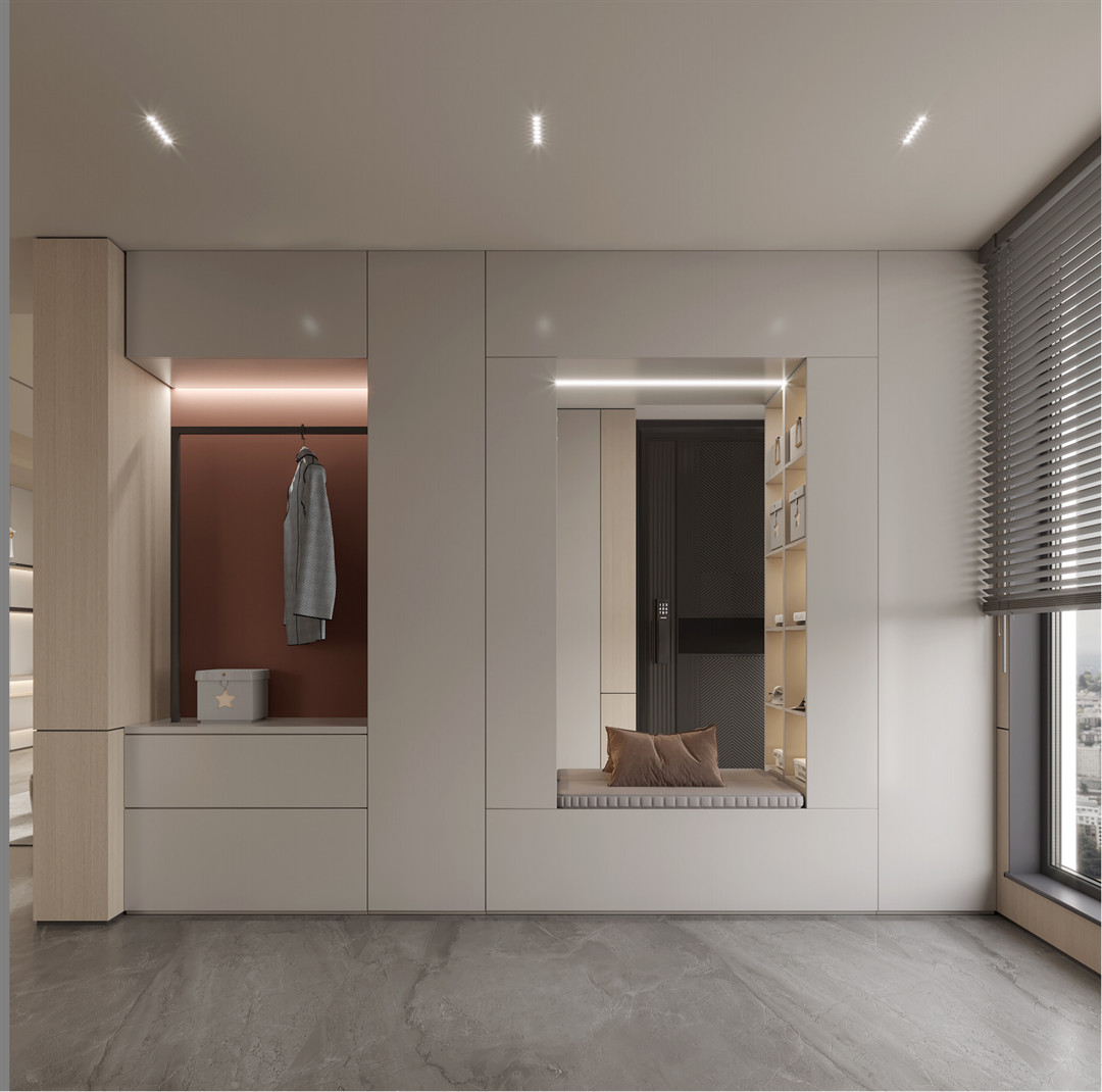 開闊透亮的門板顏色,避免了空間在視覺上和動線上的局促。在時光的流淌下, 以細膩的語言表達專屬意式輕奢的獨特美學,高級質感亦得到大提升。