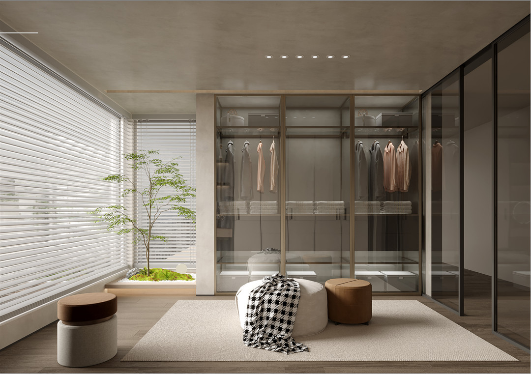 將生活觀念及審美想象真實而完整呈現的衣帽間,將意式獨有的藝術氛圍有條不紊地延展。極簡輕奢掛牆板、智能五金與附帶燈光係統的應用,為空間營造出極致的奢華感,讓一切衣物歸置有序,清晰而疏朗。