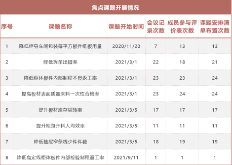 今天課題發表共8個課題,其中2個課題未結案,本次課題共開展122次會議,對參會成員評價次數共126次,課題安排清單任務布置130次