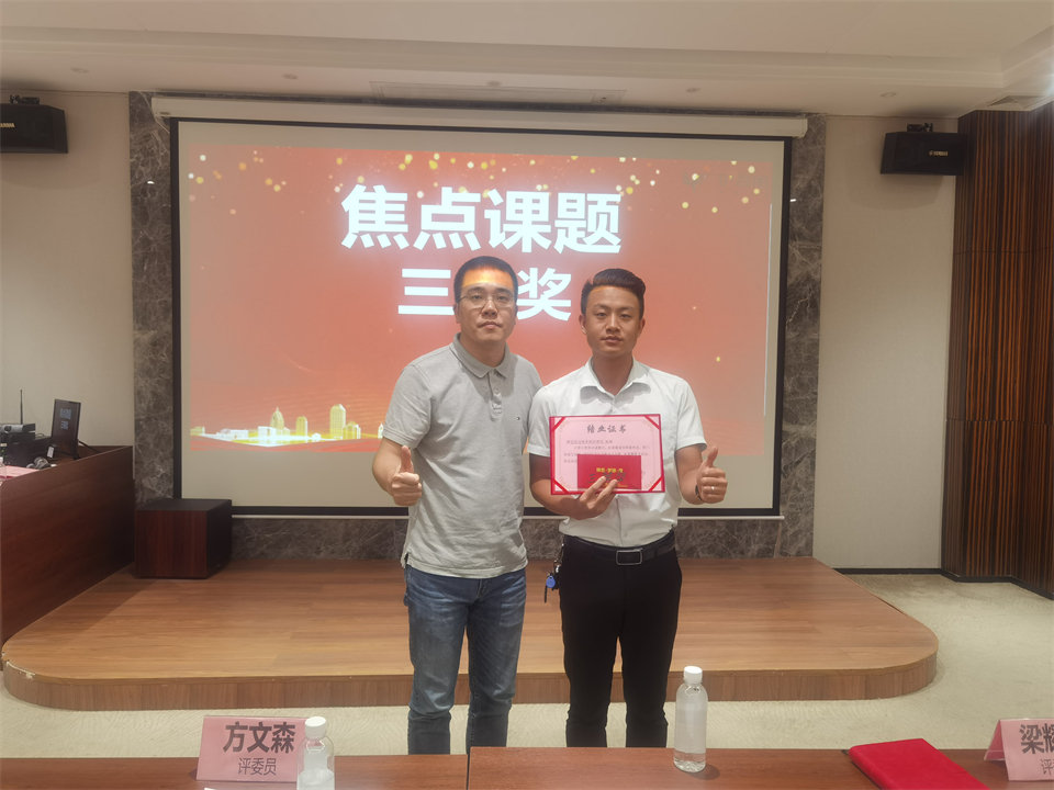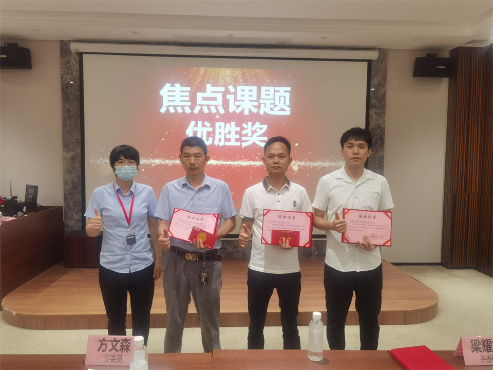 伊百麗總經理黃誌存先生為獲得初級能力的課題組長呂勤朗、韋傑、榮波頒發證書