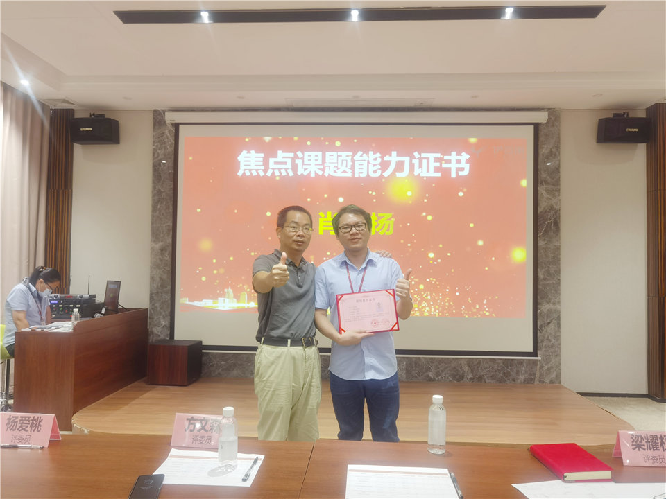 伊百麗總經理黃誌存先生為獲得中級能力的課題組長肖鈺揚頒發證書